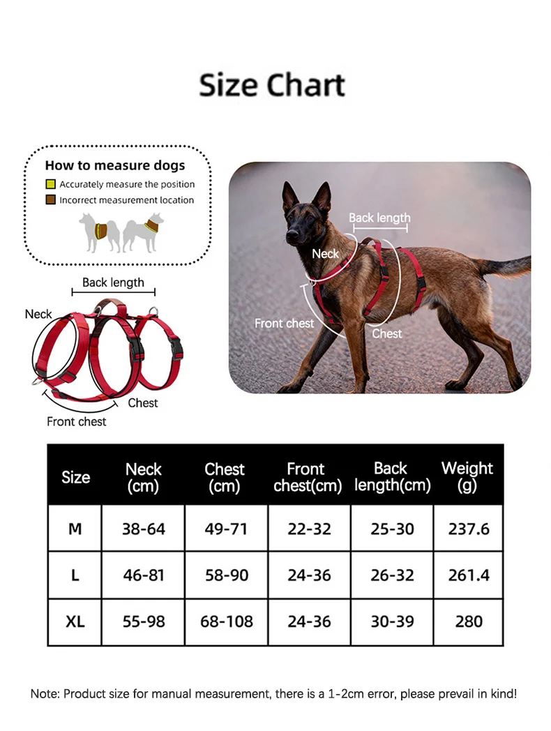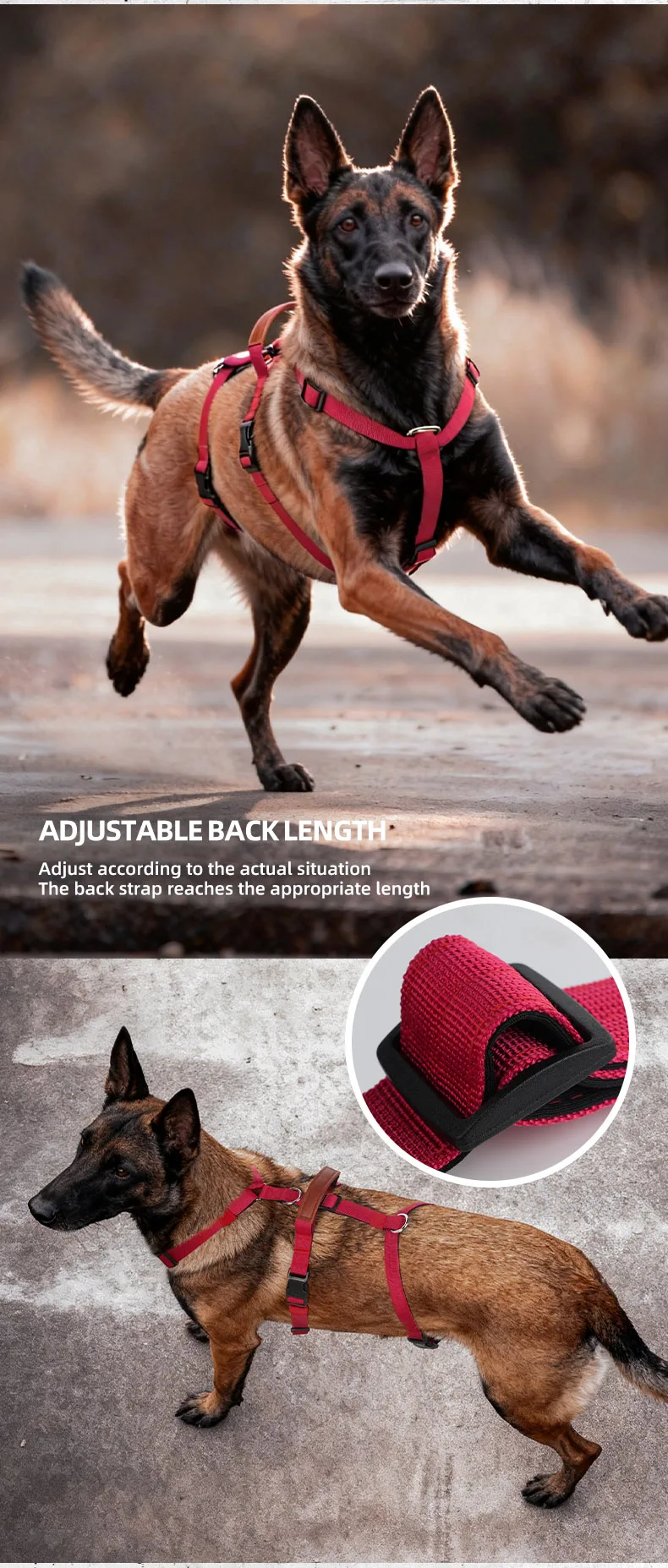 - Escape-proof design with a secure harness system and a sturdy top handle helps you guide or quickly grab your dog in crowded areas.